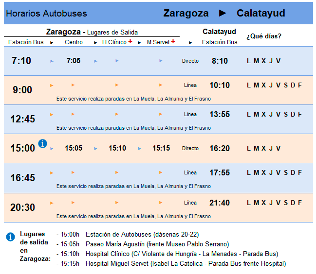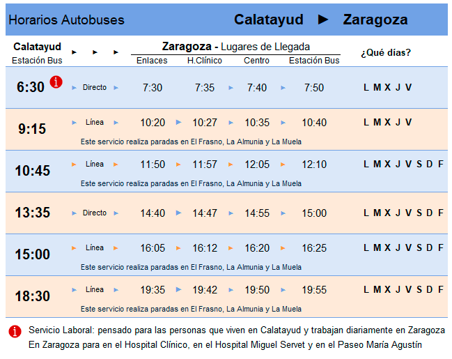 HORARIOS LINEA CALATAYUD - ZARAGOZA