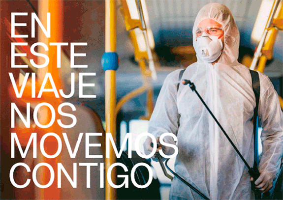 Aplicación de desinfectante de contacto despues de cada viaje en asientos, apoyabrazos, asideros |