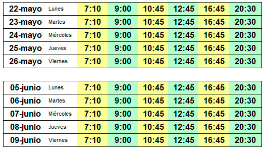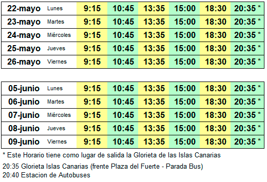 - Si no esta abierta la Taquilla acudir directamente al autobús (dasena 20)