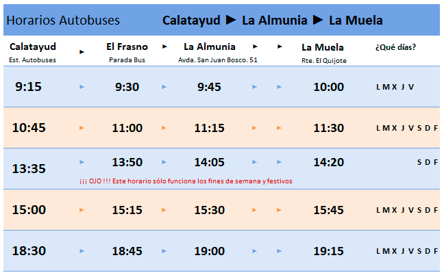 Los horarios de paso son aproximados, es necesario estar por lo menos 5 minutos antes |